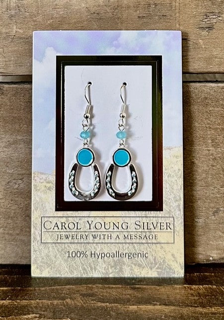 Horse Turquoise Stone Multi Bead Western Dangle Earrings