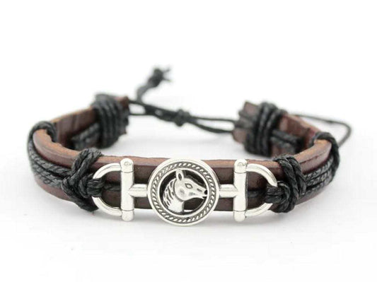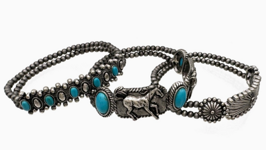 Western Native Horse Three Piece Navajo Beads Bracelet