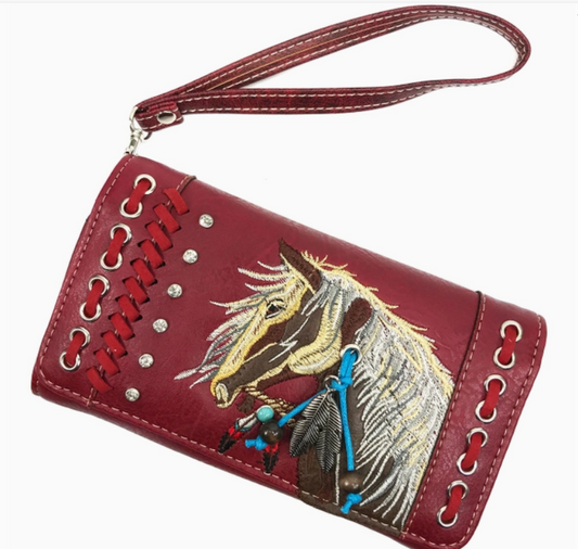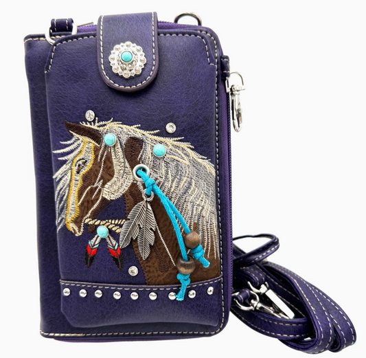 Horse Embroidery Western Crossbody Wristlet Wallet