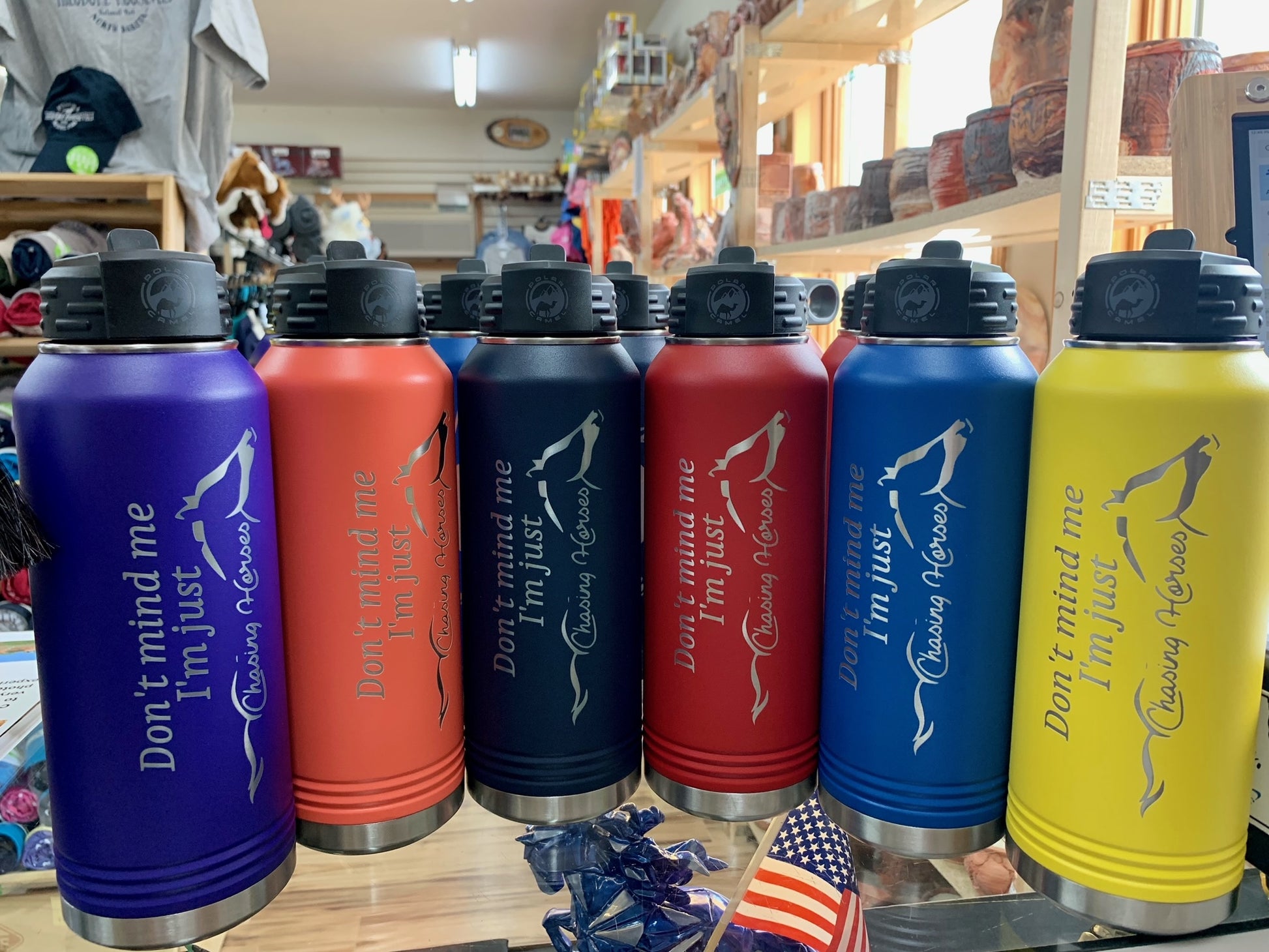 These 32 oz water bottles are a MUST when you are out hiking! They feature a screw top lid with straw for easy drinking while you are out hiking or "Chasing Horses"!