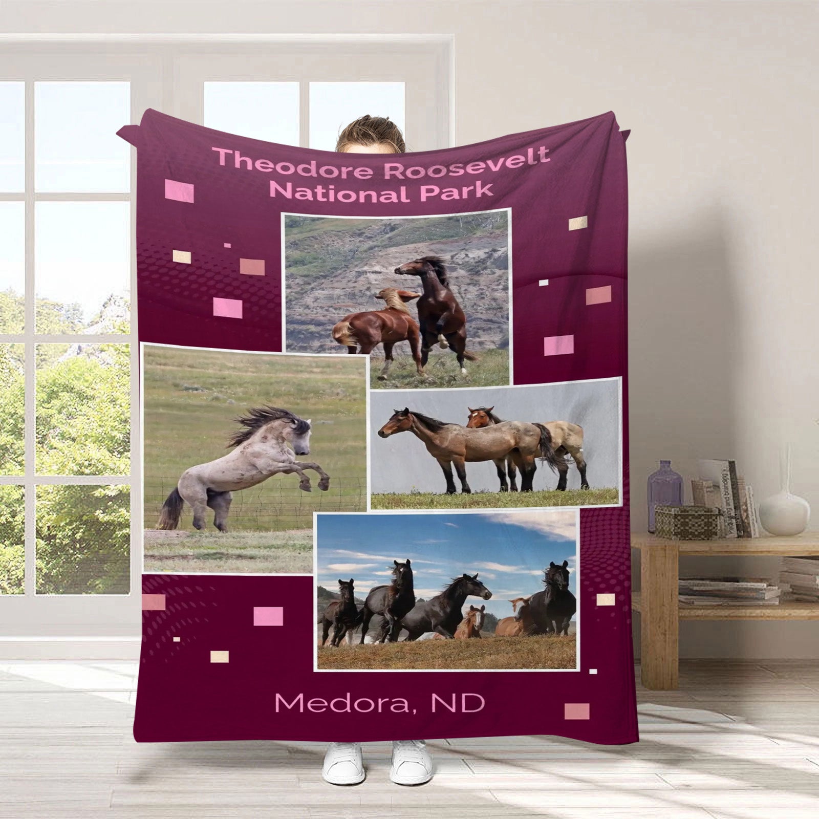 These custom flannel blankets measure 50x60 and are created with popular Chasing Horses images.
