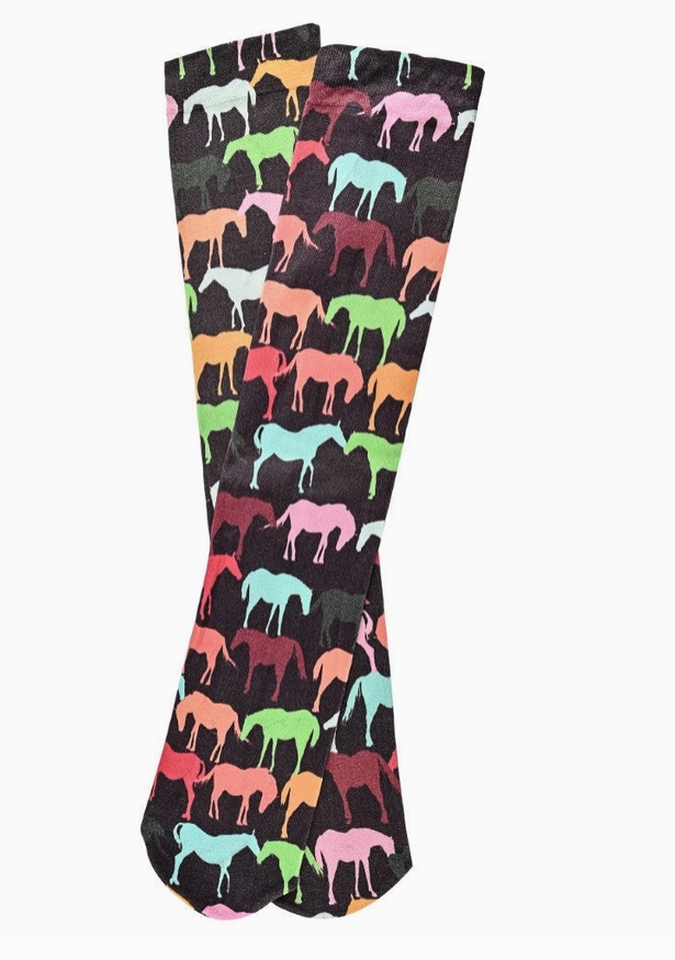 Colorful Horses Socks are the perfect gift for any horse lover! 97% polyester, 3% spandex Ladies size 9-11